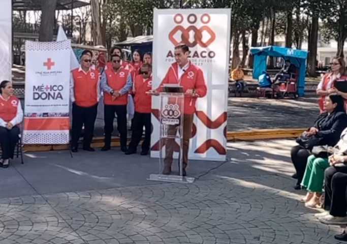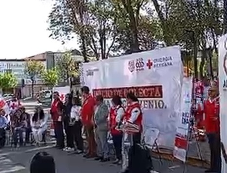 Durante la puesta en marcha de la colecta de la Cruz Roja, ordenaron al trabajador cubrirlo del sol, no así ocurrió con el delegado y una mujer más que también hizo uso de la palabra