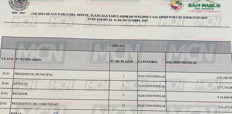 Según lo informado, su salario prácticamente se duplicó al pasar de 26 mil 0.46 pesos, a un sueldo mensual de 42 mil 164 pesos, ganando más que los propios presidentes de comunidad y regidores, aunque en ambos casos están igual, pues no hacen nada.